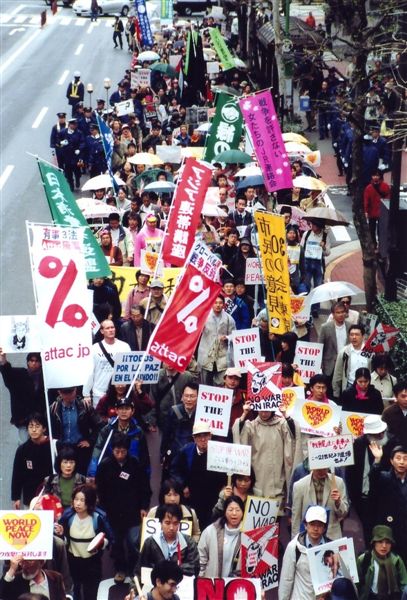 2003年4月12日、東京・坂本町公園、イラク反戦デモに2000人